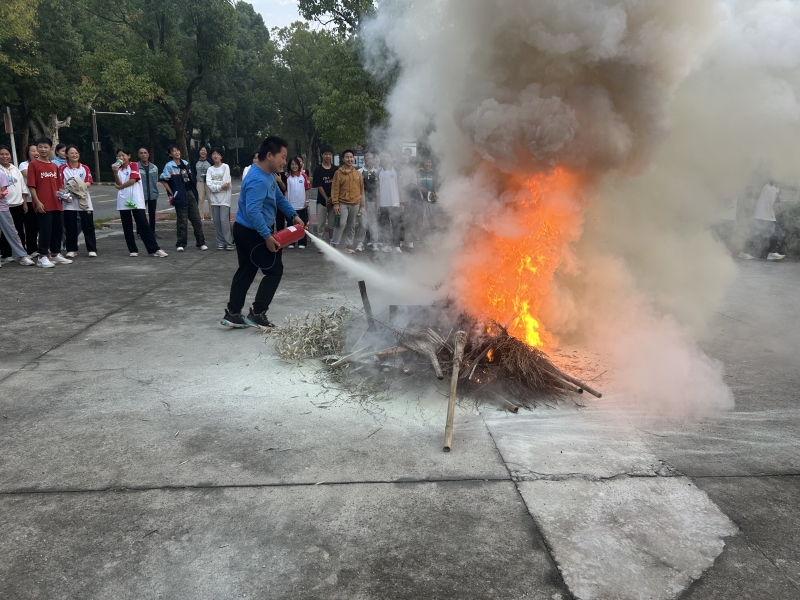在操场上,学校的消防员为学生们现场讲解并演示了灭火器的正确使用方法。学生代表在消防员的指导下,亲身体验了灭火操作,切实掌握了灭火技能。同时,消防员还向师生们介绍了火灾预防、报警、逃生等相关知识,让师生们受益匪浅。
