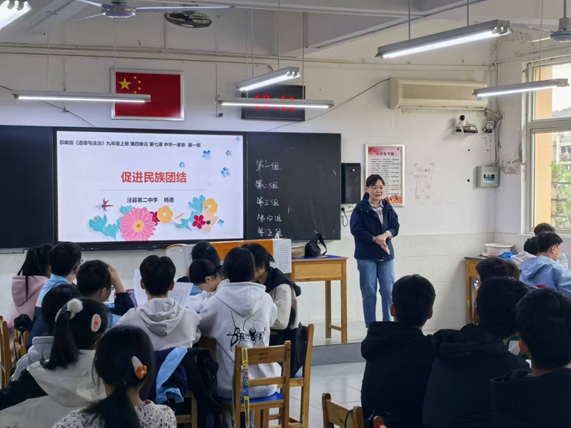 道德与法治课是旌德县梓阳学校的叶佳佳老师和我校杨蓓老师带来的《促进民族团结》。随后,在育才楼三楼对两位老师的展示课进行了评课,首先与会老师对两位老师展现出的教师素养表示肯定,其次在上课时间把控上、课堂结构以及对教材理解上等提出了建议。