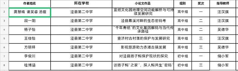 此次获奖作品均以泾县本土地理、生态、文化资源为研究对象,体现了泾县二中学子对家乡的深切关注与科学探究精神。学校将以此次获奖为契机,进一步深化地理学科实践教学,鼓励学生立足本土、探索真知,培养更多兼具学科能力与社会责任感的优秀学子。