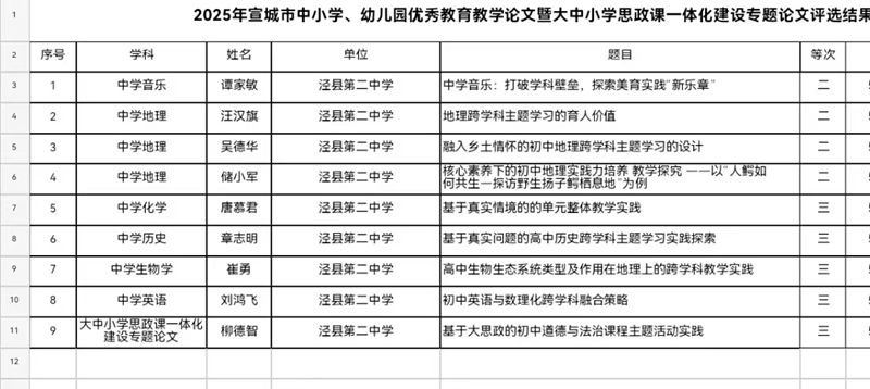 我校教师在2025年宣城市教育教学论文评选中斩获佳绩
