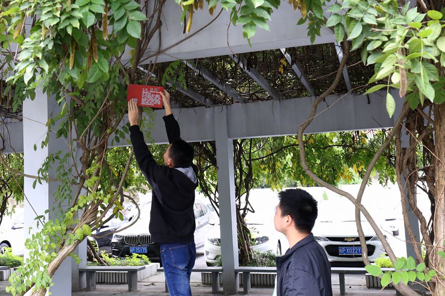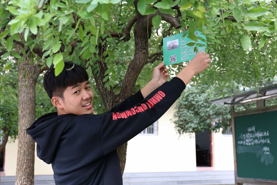 活动现场,学校教科室郭建华、生物组叶文静等老师带领高二年级部分同学,在具有专业知识的园艺师指导下,为学校的花草树木佩戴上专属“名片”。每张“名片”不仅标明花草树木的名称、种类、分布和产地等信息,还编辑了专属二维码,通过手机扫描二维码,即可了解其详细信息。师生们在挂牌之余还为一些小树修枝剪叶,助其健康成长。